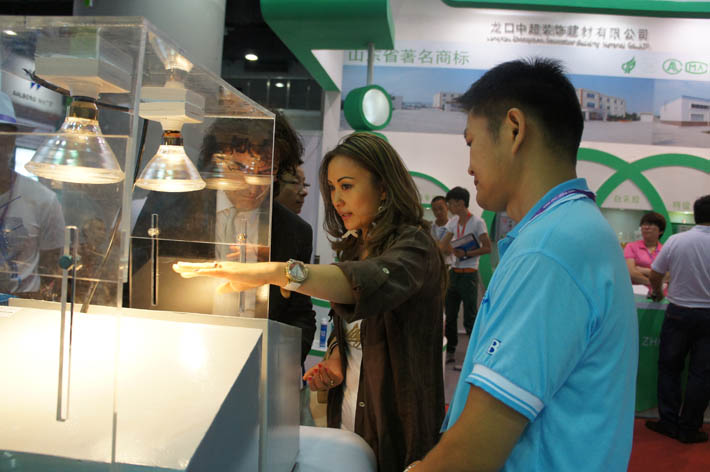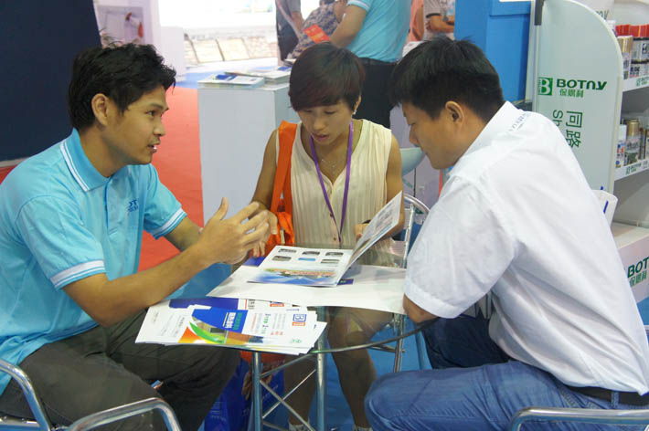 本屆展會廣州保賜利化工有限公司攜最新研發(fā)的“BOTNY”水性環(huán)保反射隔熱涂料系列產(chǎn)品,以“環(huán)!す(jié)能·減排”的綠色專業(yè)形象,富有創(chuàng)意的展位設(shè)計驚艷登場,吸引了無數(shù)觀眾駐足咨詢。精致的樣板,全開放式的產(chǎn)品展臺演示,再次展示出強(qiáng)大的專業(yè)實力。成為展會上不可忽視的一道風(fēng)景線。“節(jié)能降耗行行都需要”的概念也因此深入人心。