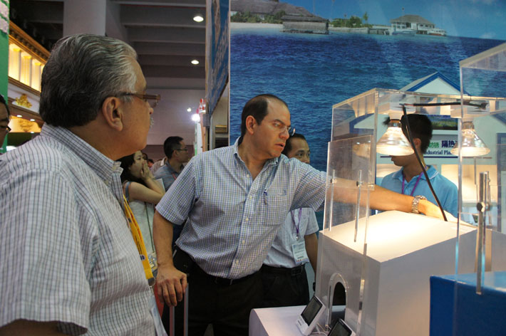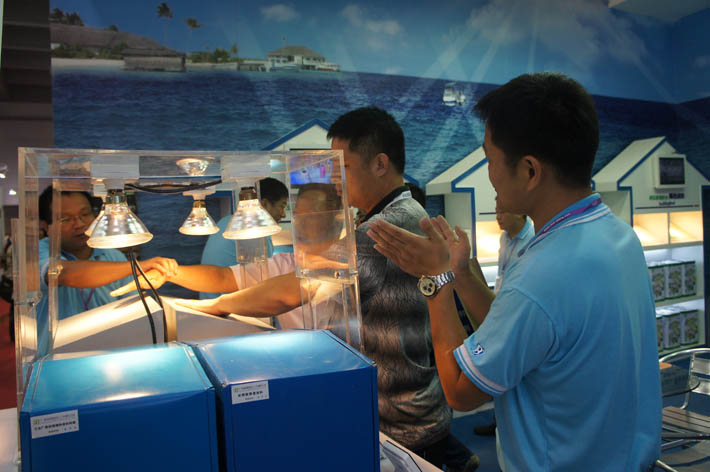 展會現(xiàn)場客戶體驗區(qū)里,幾個新款獨特的,模擬太陽光照射在金屬屋頂,混凝土屋面、建筑外墻的產(chǎn)品樣板演示道具,吸引了眾多觀眾的眼球。在我司工作人員的熱情接待下,客戶了解并感受了產(chǎn)品的測試效果。從現(xiàn)場的精密測溫儀器和客戶的親身感受來看,涂刷過我司隔熱涂料的樣板與涂刷普通涂料的樣板溫差最高可達(dá)15度,形成鮮明對比,產(chǎn)品效果立竿見影,得到了業(yè)界的高度認(rèn)可。很多觀眾在參觀了我司展位后都對我司隔熱涂料系列產(chǎn)品的涂裝效果,產(chǎn)品性能,質(zhì)量贊不絕口。
