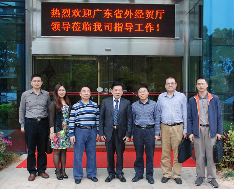 廣東省外經(jīng)貿(mào)廳領(lǐng)導(dǎo)及我司領(lǐng)導(dǎo)辦公中心前集體合影