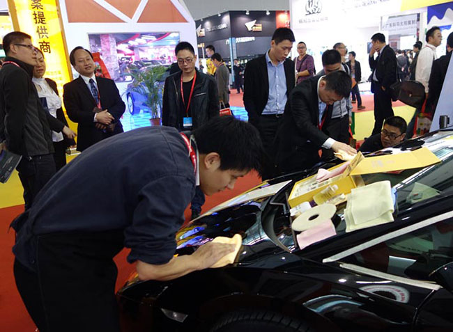 保賜利此次展臺(tái)不僅吸引了眾多專業(yè)觀眾,也為眾多客戶現(xiàn)場(chǎng)施工保賜利漆面鍍膜產(chǎn)品—— “保賜利碳晶鍍膜”,演示效果立竿見影,人氣瞬間推至高潮。展會(huì)現(xiàn)場(chǎng),保賜利也悉心為廣大經(jīng)銷商和專業(yè)觀眾安排了一場(chǎng)嘗鮮會(huì),將即將在3月登陸央視的保賜利產(chǎn)品廣告片率先讓參觀觀眾觀覽,并獲一致好評(píng)。