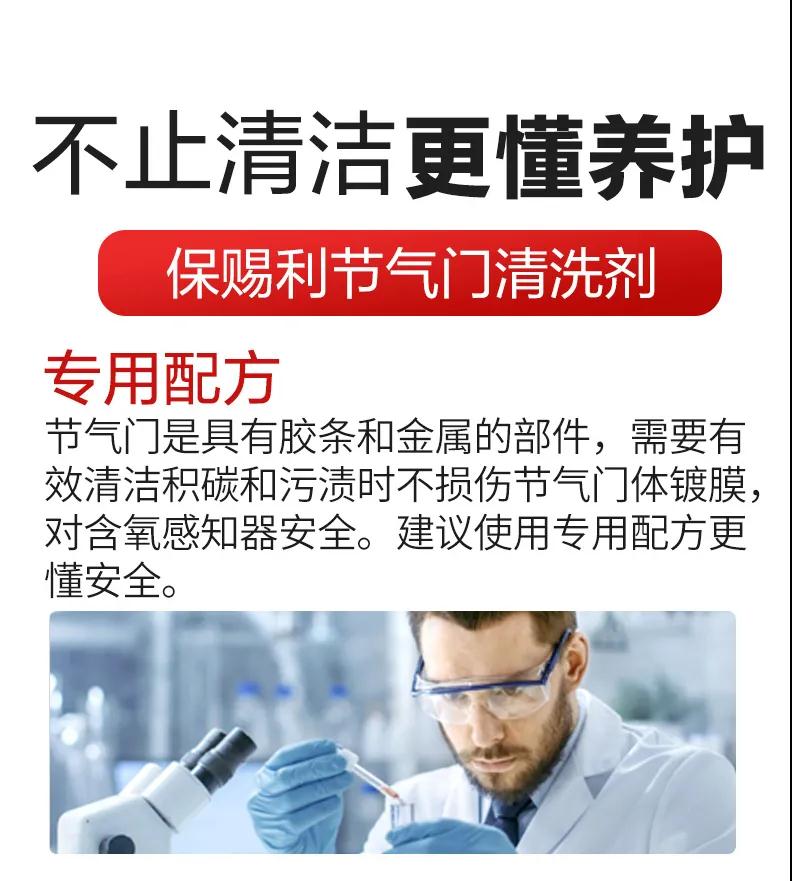 保賜利節(jié)氣門清洗劑,快速清除發(fā)動機“咽喉”節(jié)氣門積碳油泥,恢復(fù)澎湃動力。