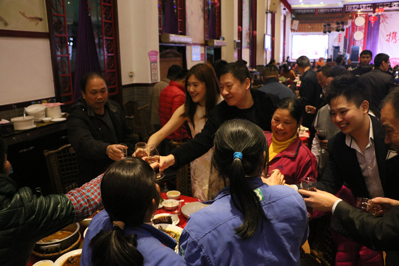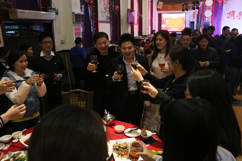 致辭完畢后,董事會(huì)向大家鞠躬致意,并端起酒杯,向大家致以新年的問(wèn)候。并預(yù)祝大家在今晚的晚會(huì)中,收獲一個(gè)美好的夜晚。