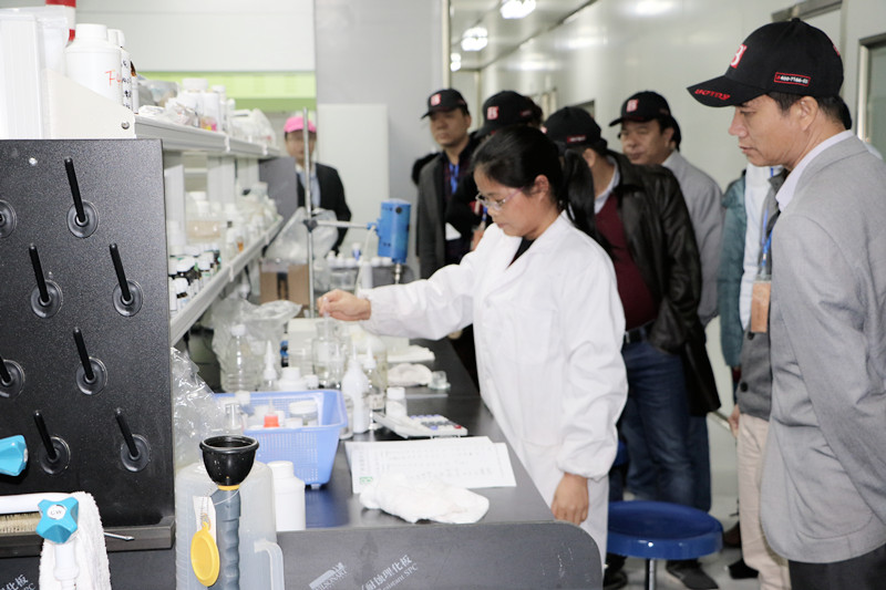 (經(jīng)銷商訪問團(tuán)參觀公司質(zhì)檢中心)