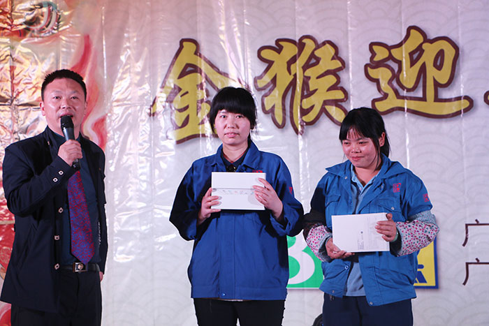執(zhí)行董事連馨莉小姐、執(zhí)行董事連興隆先生、常務(wù)副總劉利明先生為員工頒發(fā)一等獎