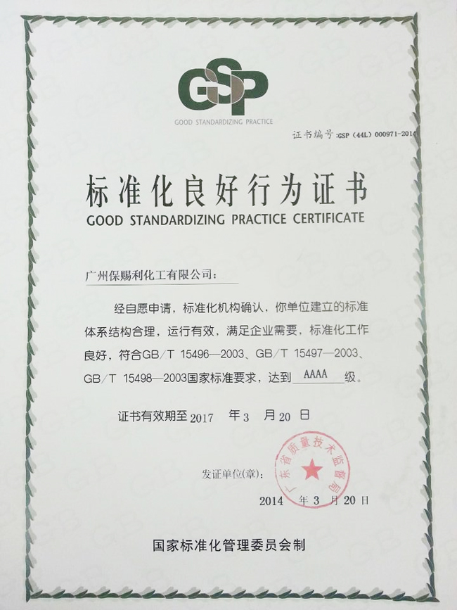 2014年始,廣州保賜利屢獲殊榮,不僅獲得多項(xiàng)國(guó)家權(quán)威機(jī)構(gòu)資質(zhì)認(rèn)證、行業(yè)各項(xiàng)大獎(jiǎng),更獲得國(guó)家標(biāo)準(zhǔn)化管理委員會(huì)行為資質(zhì)認(rèn)證、廣東省科學(xué)技術(shù)廳的高度認(rèn)可等多項(xiàng)榮譽(yù)。