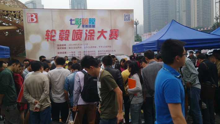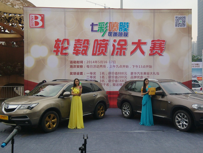 2014年5月16日,由重慶市人民政府和雅森國(guó)際展覽有限公司聯(lián)合主辦的“2014年中國(guó)汽車用品暨改裝汽車展覽會(huì)”在重慶國(guó)際會(huì)議展覽中心盛大開(kāi)幕。保賜利作為本次展會(huì)主辦方力邀的知名品牌,不僅在室內(nèi)場(chǎng)館強(qiáng)勢(shì)登陸,更在室外展館以150平方活動(dòng)現(xiàn)場(chǎng),為所有觀覽觀眾精心策劃了為期2天的保賜利七彩噴膜輪轂噴涂大賽活動(dòng)。