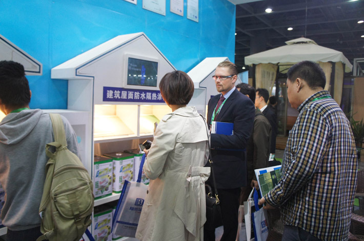 本屆展會(huì)廣州保賜利化工有限公司攜最新研發(fā)的“BOTNY”水性環(huán)保反射隔熱涂料系列產(chǎn)品,以“環(huán)!す(jié)能·減排”的綠色專(zhuān)業(yè)形象,富有創(chuàng)意的展位設(shè)計(jì)驚艷登場(chǎng)。吸引了無(wú)數(shù)觀眾駐足咨詢;精致的樣板,全開(kāi)放式的產(chǎn)品展臺(tái)演示,再次展示出強(qiáng)大的專(zhuān)業(yè)實(shí)力。成為展會(huì)上不可忽視的一道亮麗風(fēng)景線。“節(jié)能降耗 行行都需要”的廣告語(yǔ)也因此深入人心。