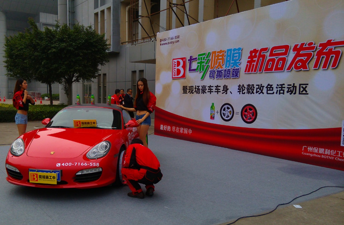 廣州保賜利作為本屆展會(huì)主場(chǎng)力邀的知名品牌,不僅高端亮相,更在本屆展會(huì)同期活動(dòng)——漂移競(jìng)技大賽活動(dòng)區(qū)域,現(xiàn)場(chǎng)發(fā)布保賜利2013年新品——七彩噴膜(可撕噴膜)。