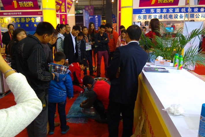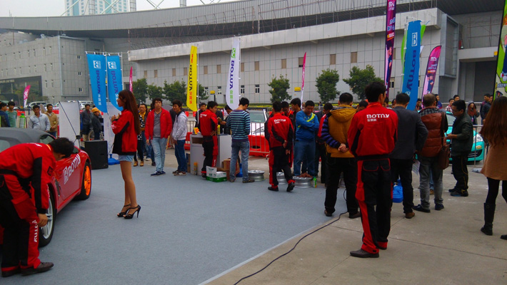 展位現(xiàn)場(chǎng),保賜利展臺(tái)設(shè)計(jì)呈現(xiàn)出高端、大氣,并配有超大屏幕的LED顯示屏,成為眾多觀覽觀眾首選,眾多觀眾更在現(xiàn)場(chǎng)活動(dòng)中,踴躍參與,現(xiàn)場(chǎng)熱購(gòu)更一度達(dá)到狂熱,人氣爆棚。在漂移競(jìng)技大賽區(qū)域,保賜利現(xiàn)場(chǎng)發(fā)布的七彩噴膜(可撕噴膜),不僅吸收超高人氣,現(xiàn)場(chǎng)更有美女走秀,七彩噴膜現(xiàn)場(chǎng)對(duì)法拉利等世界名車進(jìn)行輪轂改色施工演示。