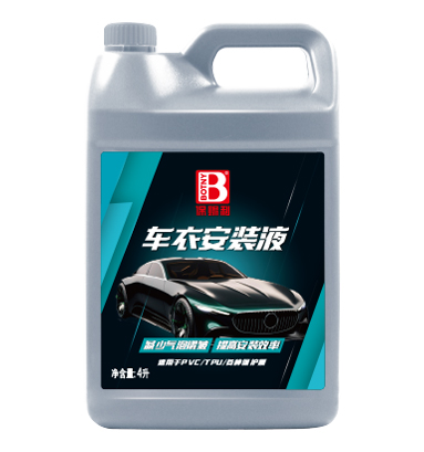 本品可作為安裝車衣時的輔助液。減少車衣安裝過程中所產(chǎn)生的氣泡、褶皺等不良現(xiàn)象,提高車衣安裝效率。使用時車衣不易滑動,不影響車衣粘性,且對車衣無腐蝕。